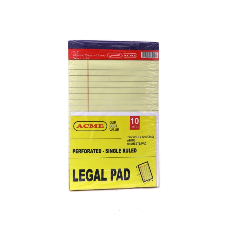 LEGAL PAD - A5 SIZE (8'X 5") - ACME - YELLOW COLOR